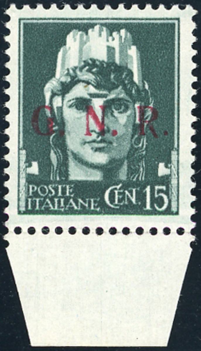 Lot 872 - 1943 - 15 cent. soprastampa G.N.R. di Brescia, III tipo, ...