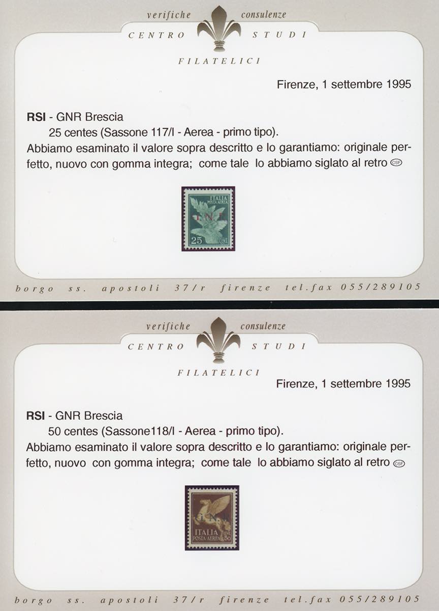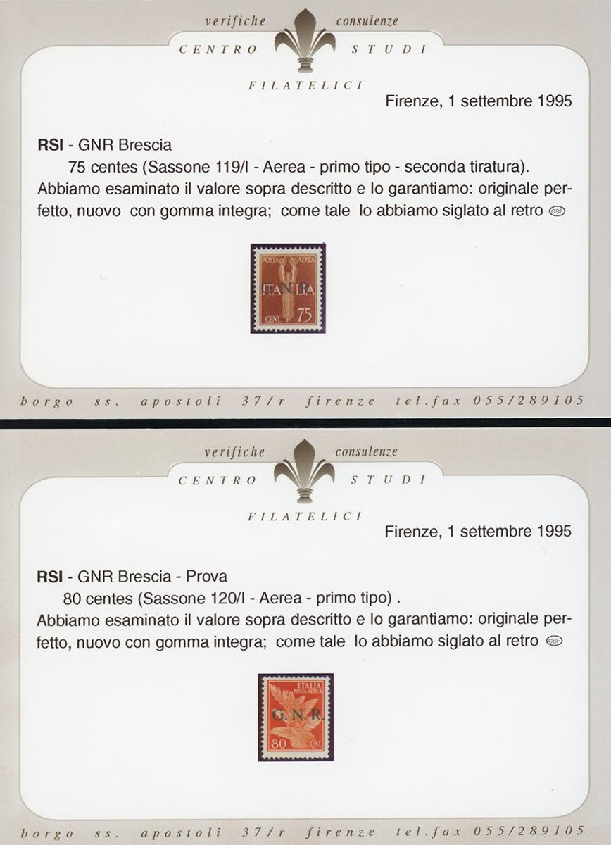 Lot 894 - 1943 - Soprastampati G.N.R. di Brescia, I tipo, sette ...