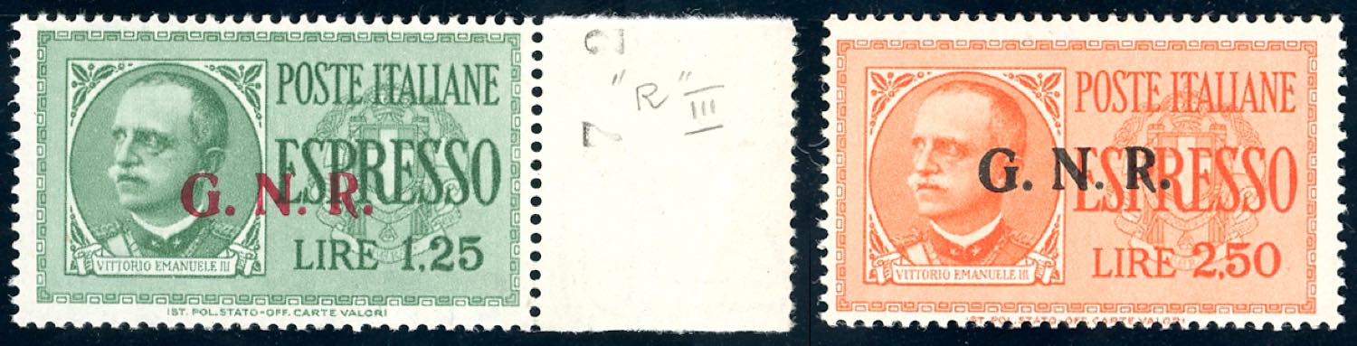 Lot 915 - 1943 - 1,25 lire e 2,50 lire soprastampa G.N.R. di Brescia, ...