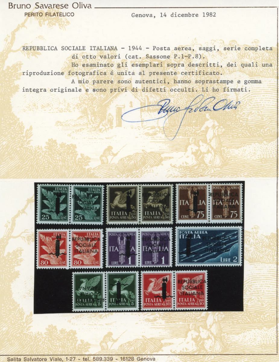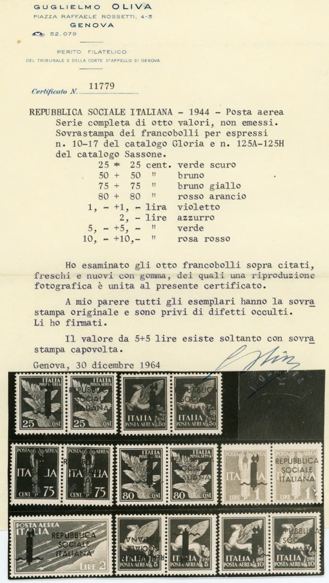 POSTA AEREA 1944 - Coppie con soprastampa dell'espresso, tiratura di Genova, serie completa (P1/P8), gomma originale integra, perfetti. Rari e di ottima qualità. Cert. Oliva.