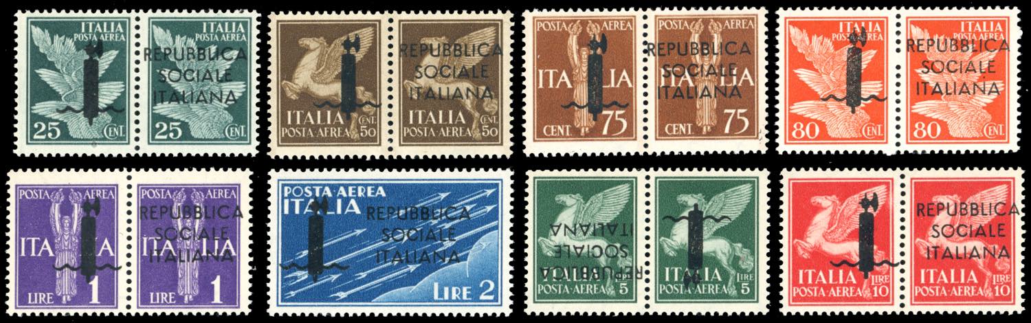 POSTA AEREA 1944 - Coppie con soprastampa dell'espresso, tiratura di Genova, serie completa (P1/P8), gomma originale integra, perfetti. ... Read more