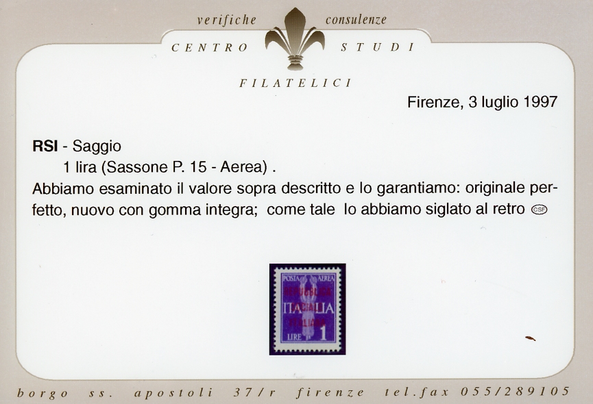 POSTA AEREA 1944 - Soprastampati in rosso, tiratura di Verona, serie completa (P14/P15), gomma originale integra, perfetti. Rari, tiratura cento esemplari, e di ottima qualità. Cert. Ferrario.
