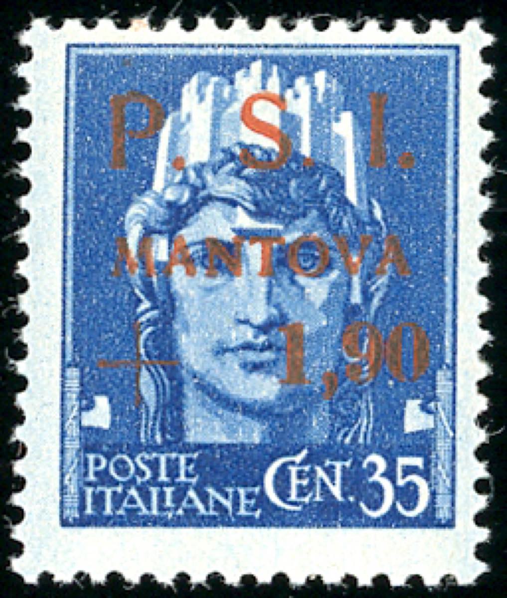 MANTOVA 1945 - 1,90 lire su 35 cent. azzurro Imperiale, errore di valore (3A), gomma originale integra, perfetto. Presenta consuete lievi ... Read more