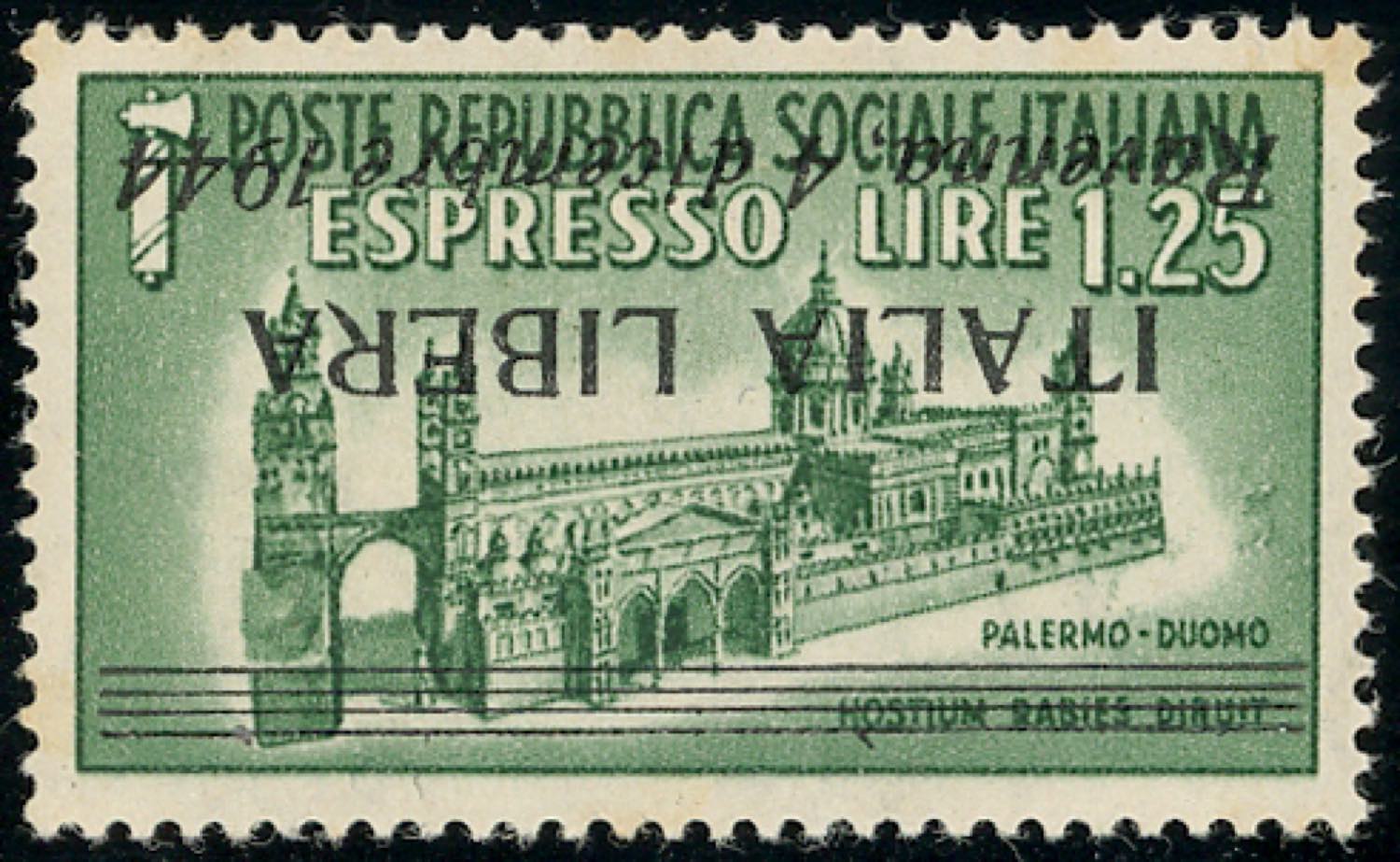 Lot 1069 - RAVENNA 1944 - 1,25 lire espresso, soprastampa capovolta ...