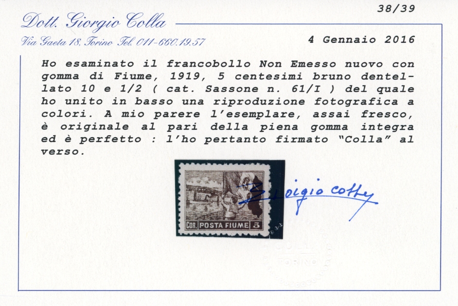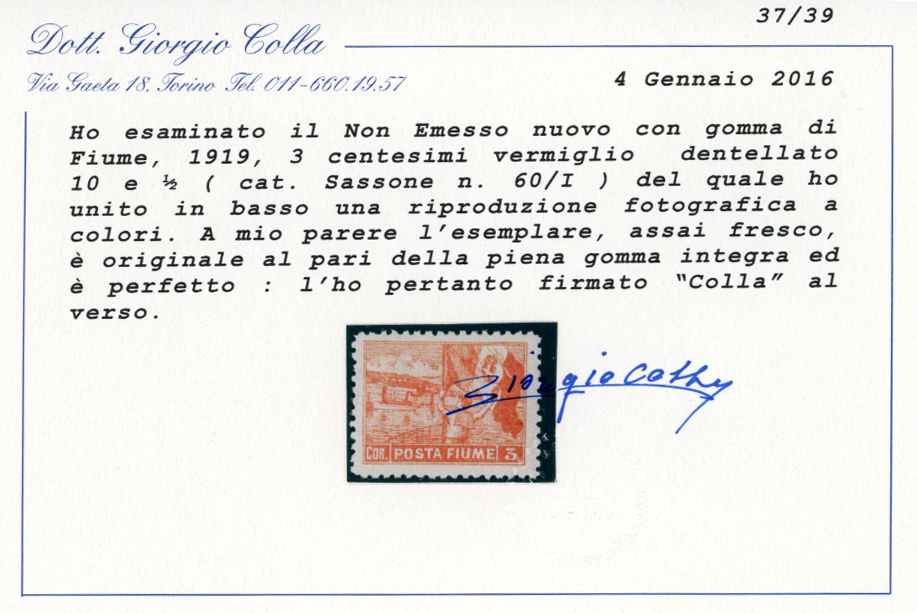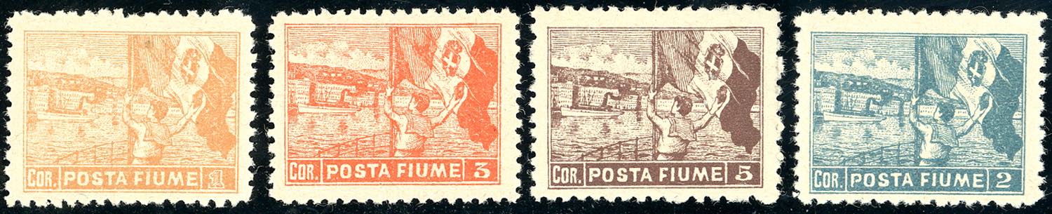 FIUME 1919 - Vedute, dent. 10 1/2, non emessi (58/I-61/I), gomma integra, perfetti. Splendidi e rari. Quattro cert. Colla.