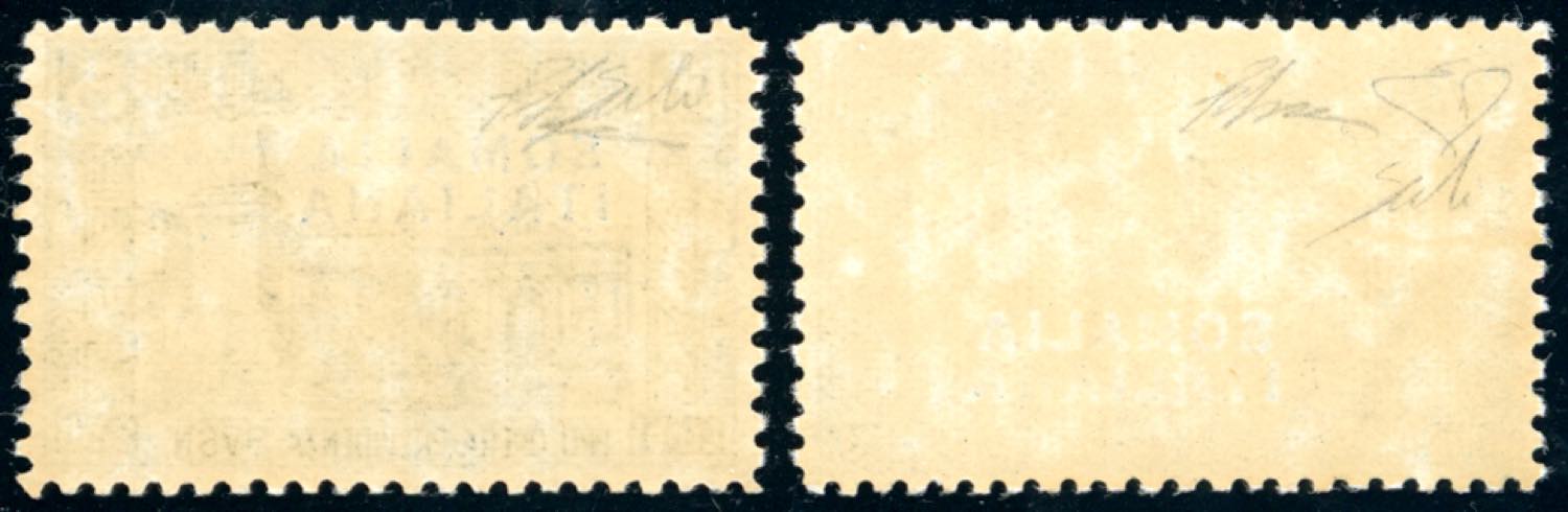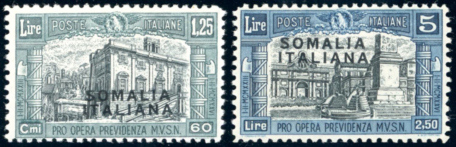 1927 - 1,25 lire su 60 cent., 5 lire su 2,50 lire Milizia I, errore di colore, non emessi (107A,108A), gomma originale integra, perfetti. ... Read more