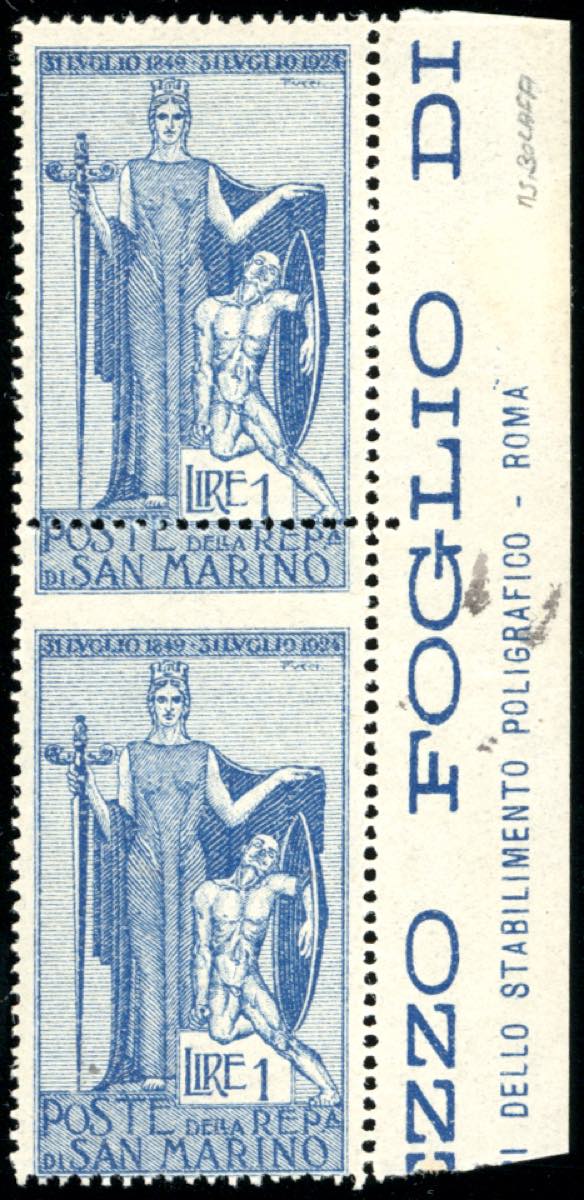 Lot 1374 - 1924 - 1 lira Garibaldi, coppia verticale, dentellatura ...
