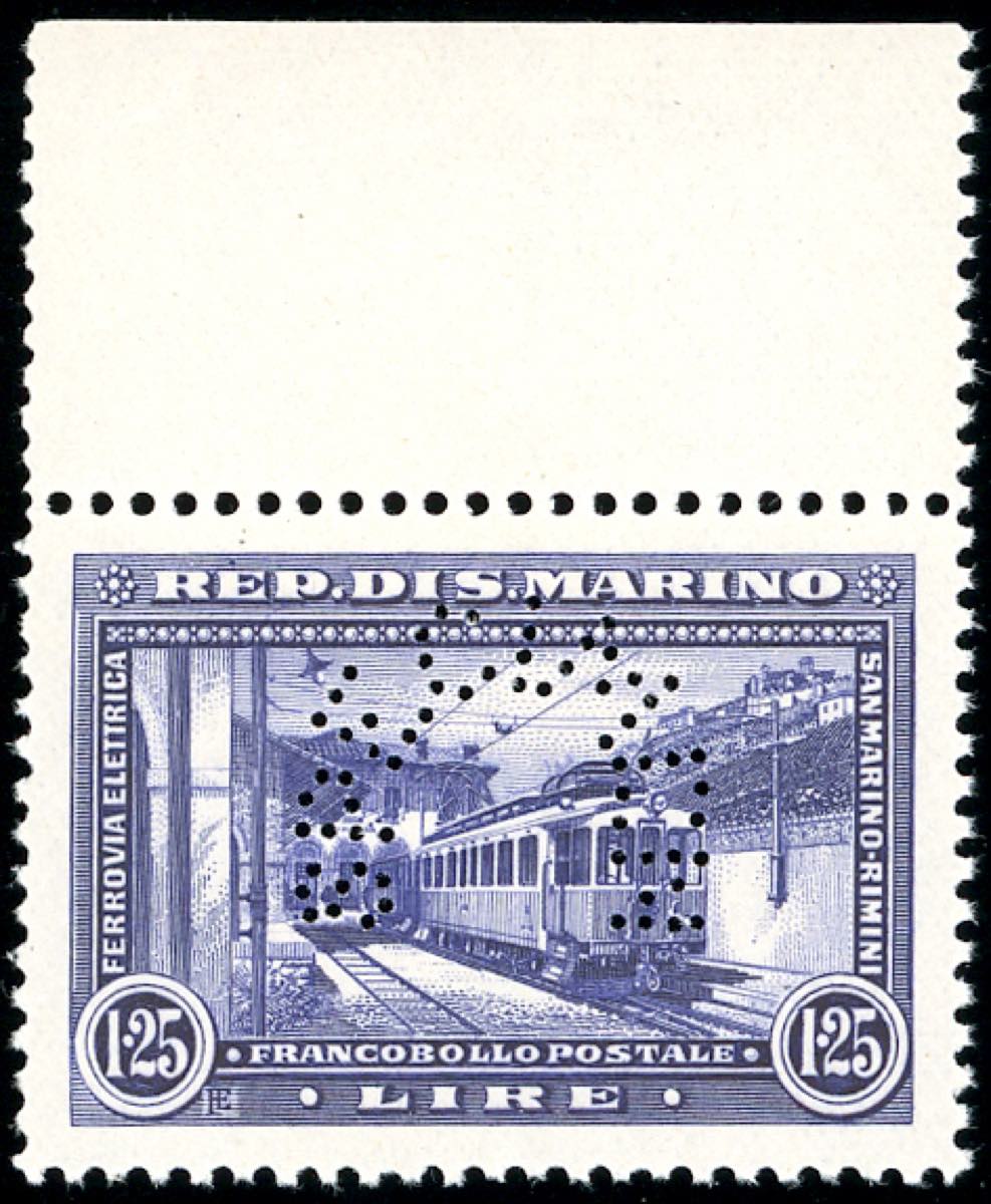 Lot 1379 - 1932 - 1,25 lire violetto Treni, perforato "specimen" ...