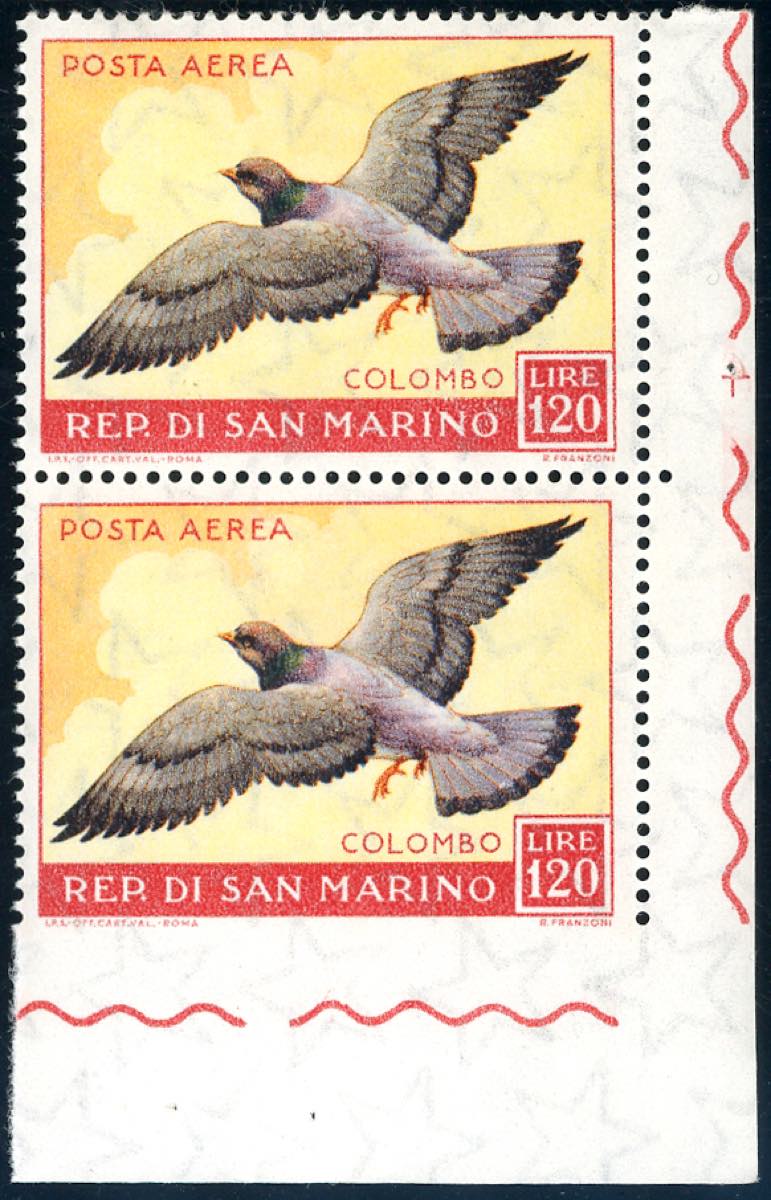 Lot 1446 - 1959 - 120 lire Uccelli, non dentellato in basso, in coppia ...