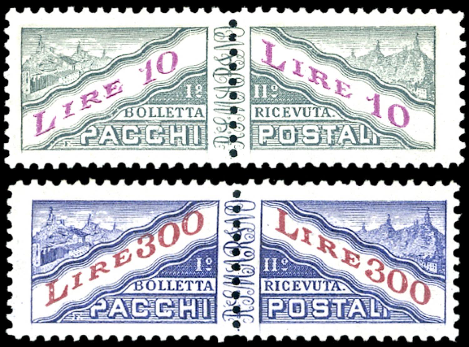 1953 - 10 e 300 lire, filigrana ruota (35/36), gomma originale integra, perfetti, ottime qualità. Ferrario.