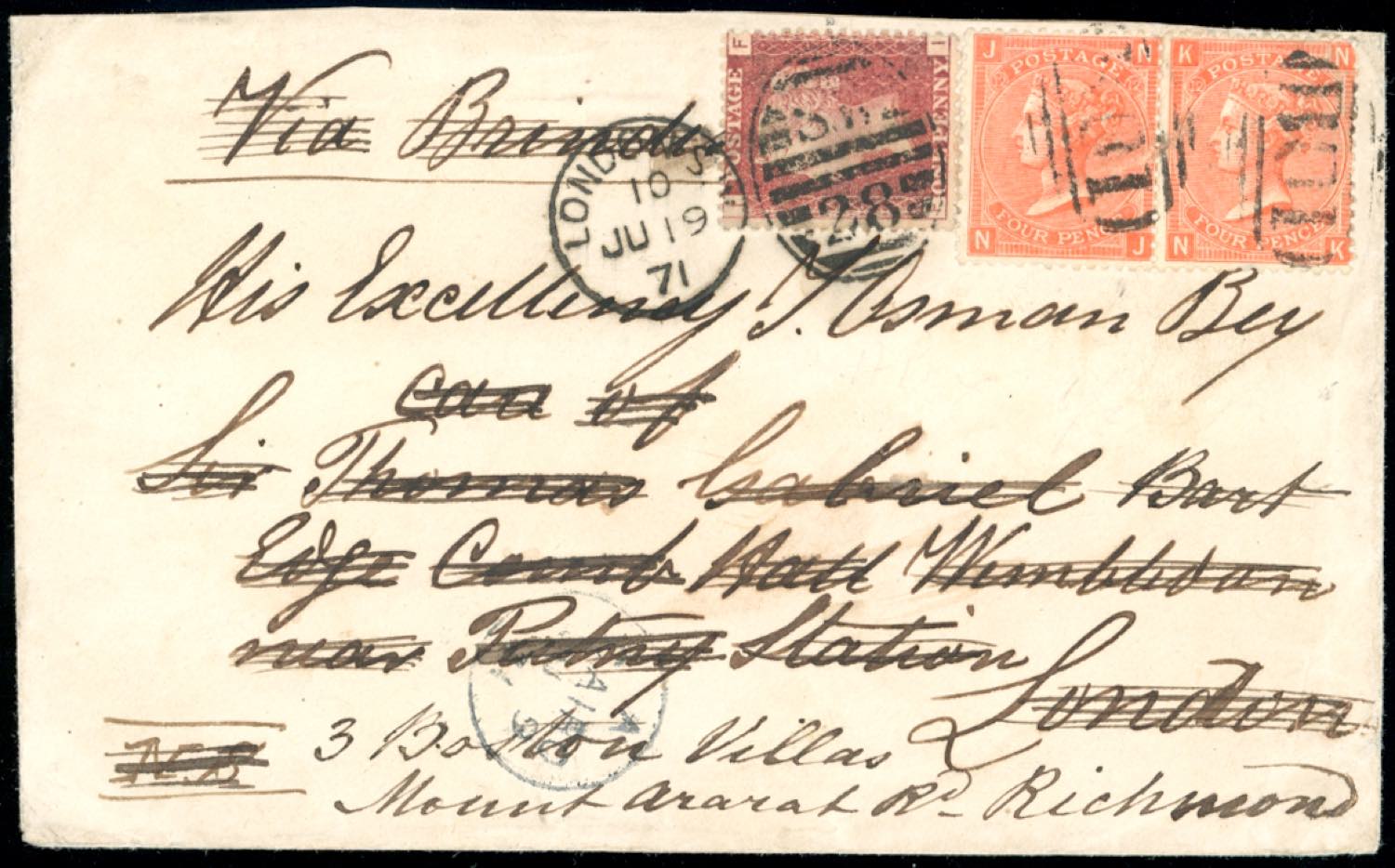 1871 - EGYPT/GREAT BRITAIN - Redirected with additional franking.