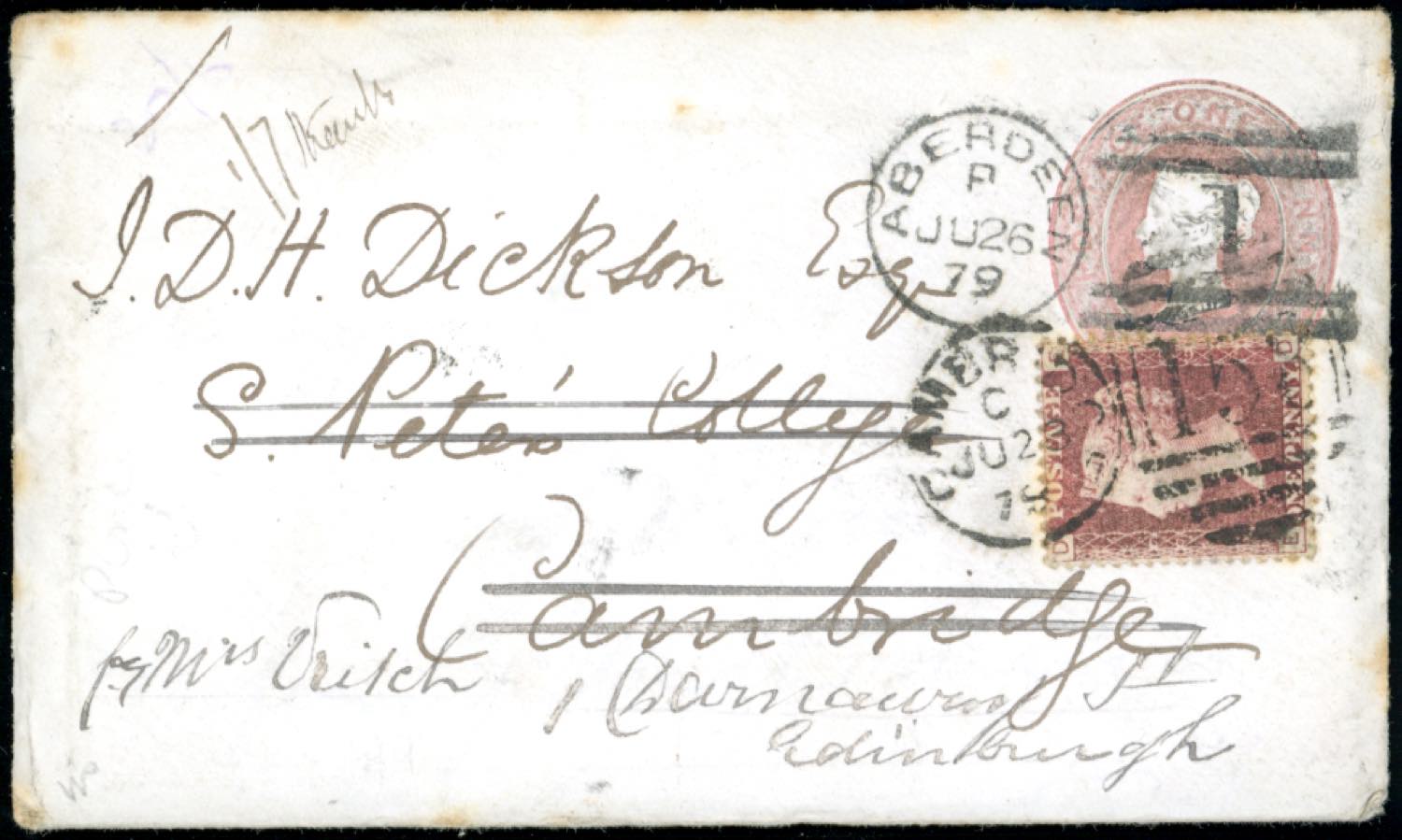 Lot 1587 - 1879 - GREAT BRITAIN - Redirected with additional franking.