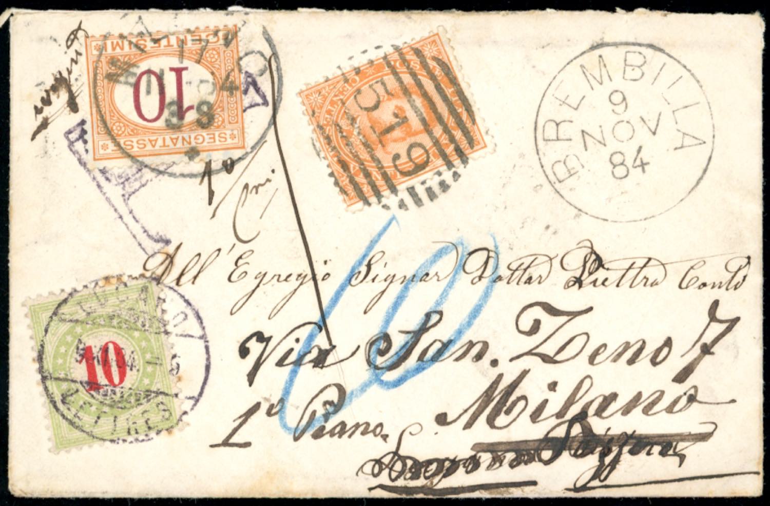 Lot 1590 - 1884 - ITALY/SWISS/ITALY - Redirected, with postage due. ...