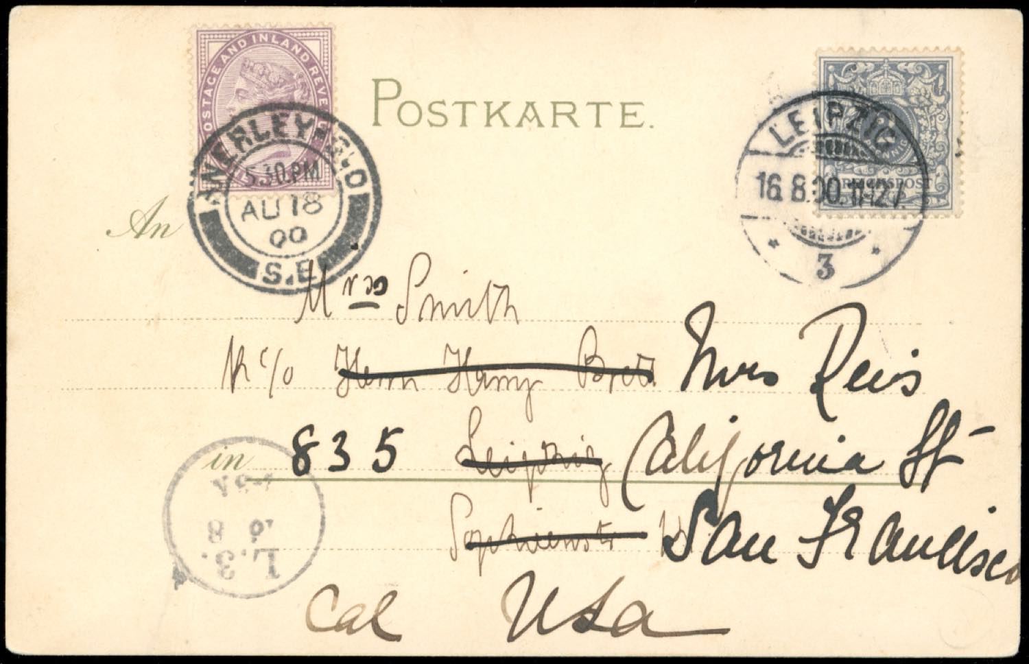 1900 - GERMANY/GREAT BRITAIN/UNITED STATES OF AMERICA - Redirected with additional franking.