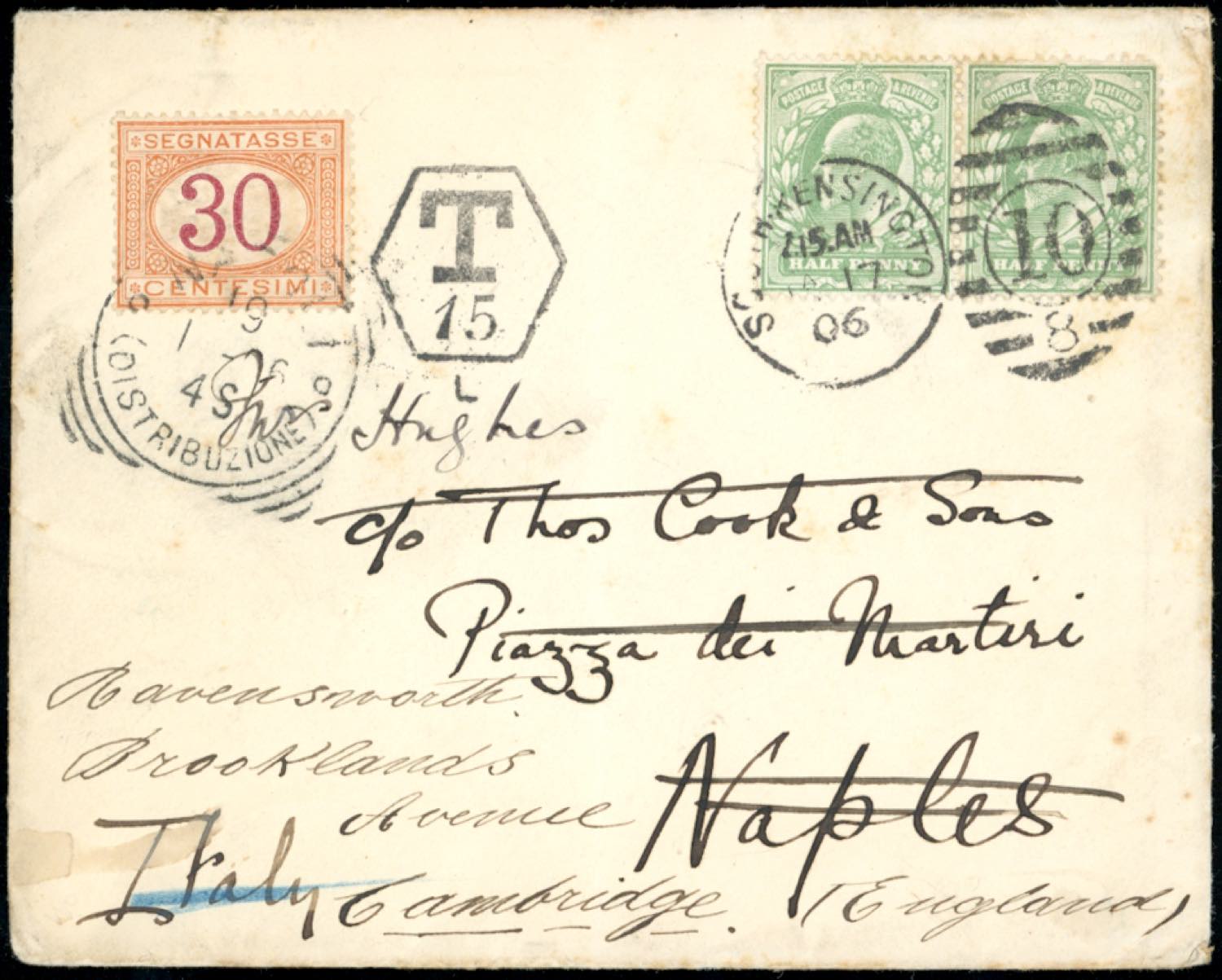 Lot 1626 - 1906 - GREAT BRITAIN/ITALY/GREAT BRTAIN - Redirected, with ...