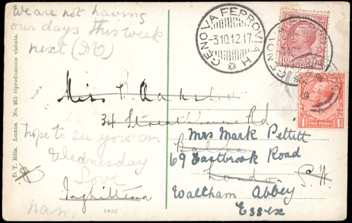 Lot 1638 - 1912 - ITALY/GREAT BRITAIN - Redirected with additional ...