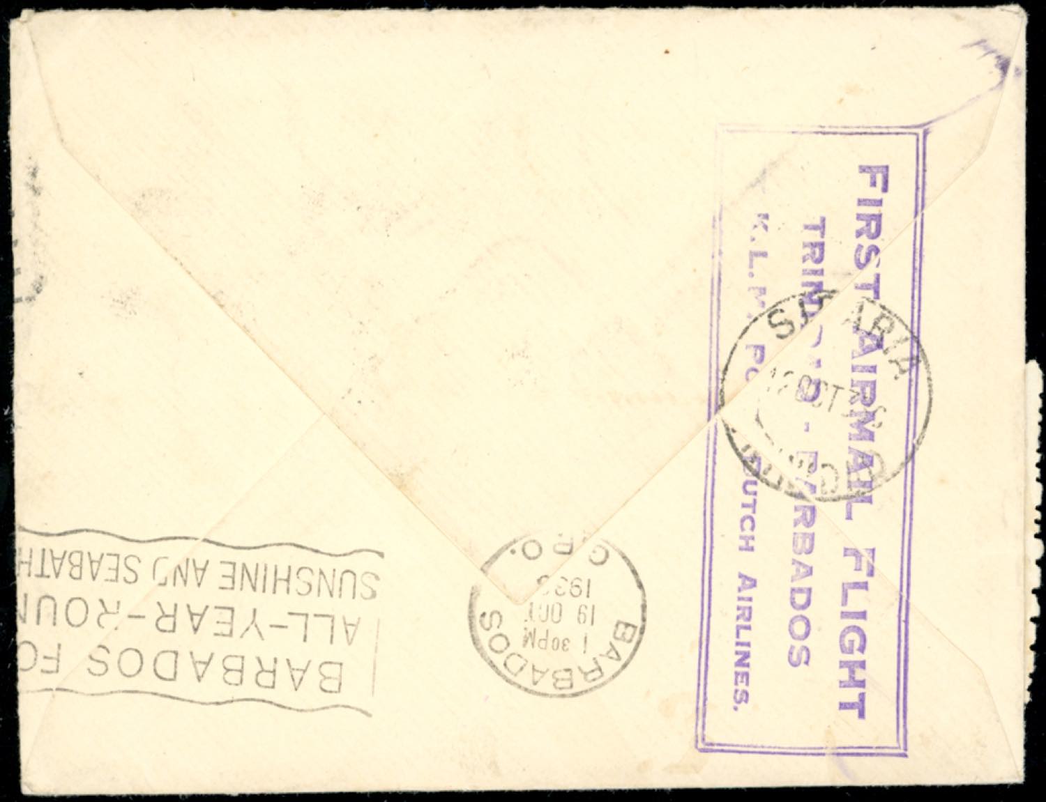 1938 - GREAT BRITAIN/TRINIDAD & TOBAGO/BARBADOS - Redirected with additional franking.