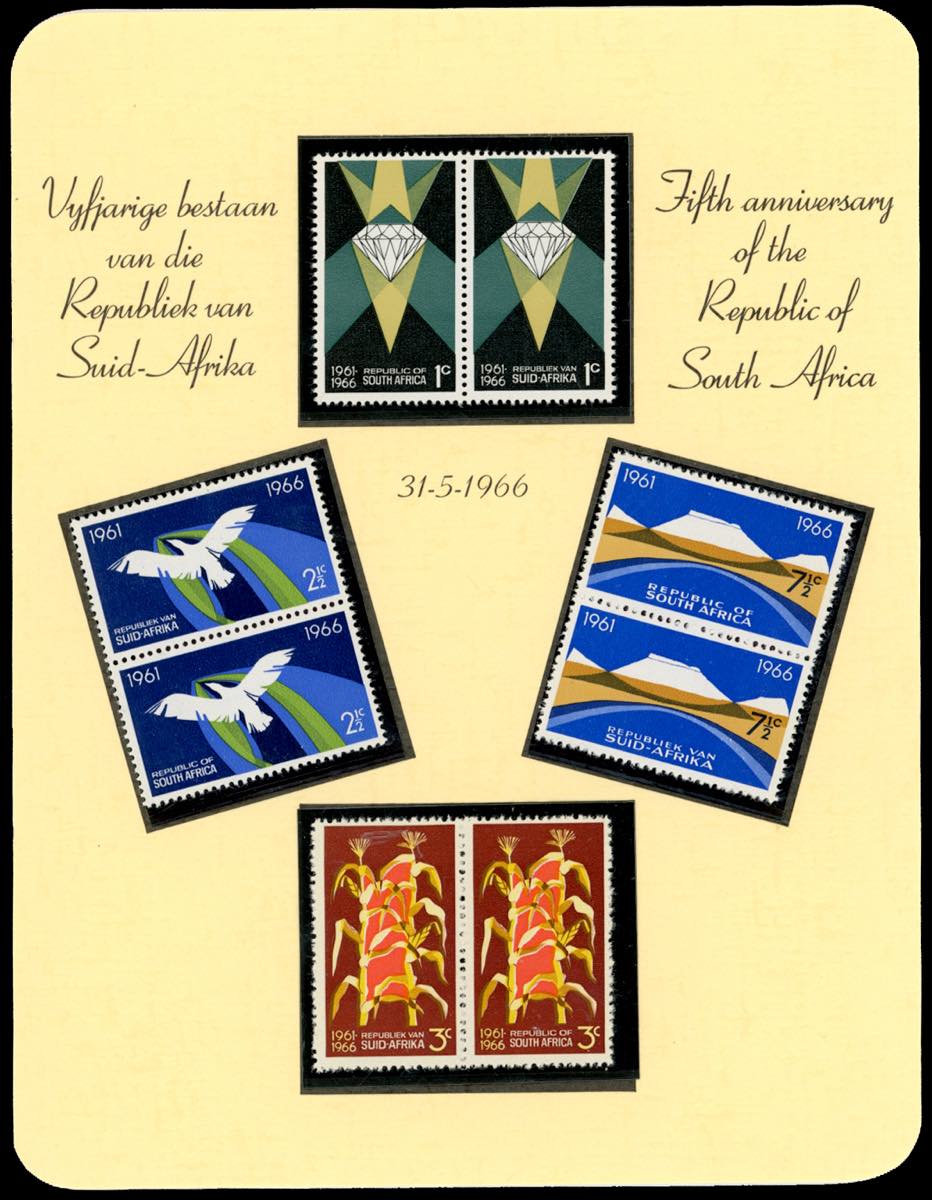 SOUTH AFRICA 1966 - 5th Anniversary of the Republic of the South Africa, special reprint on swiss paper for U.P.U., presentation card. Rare.