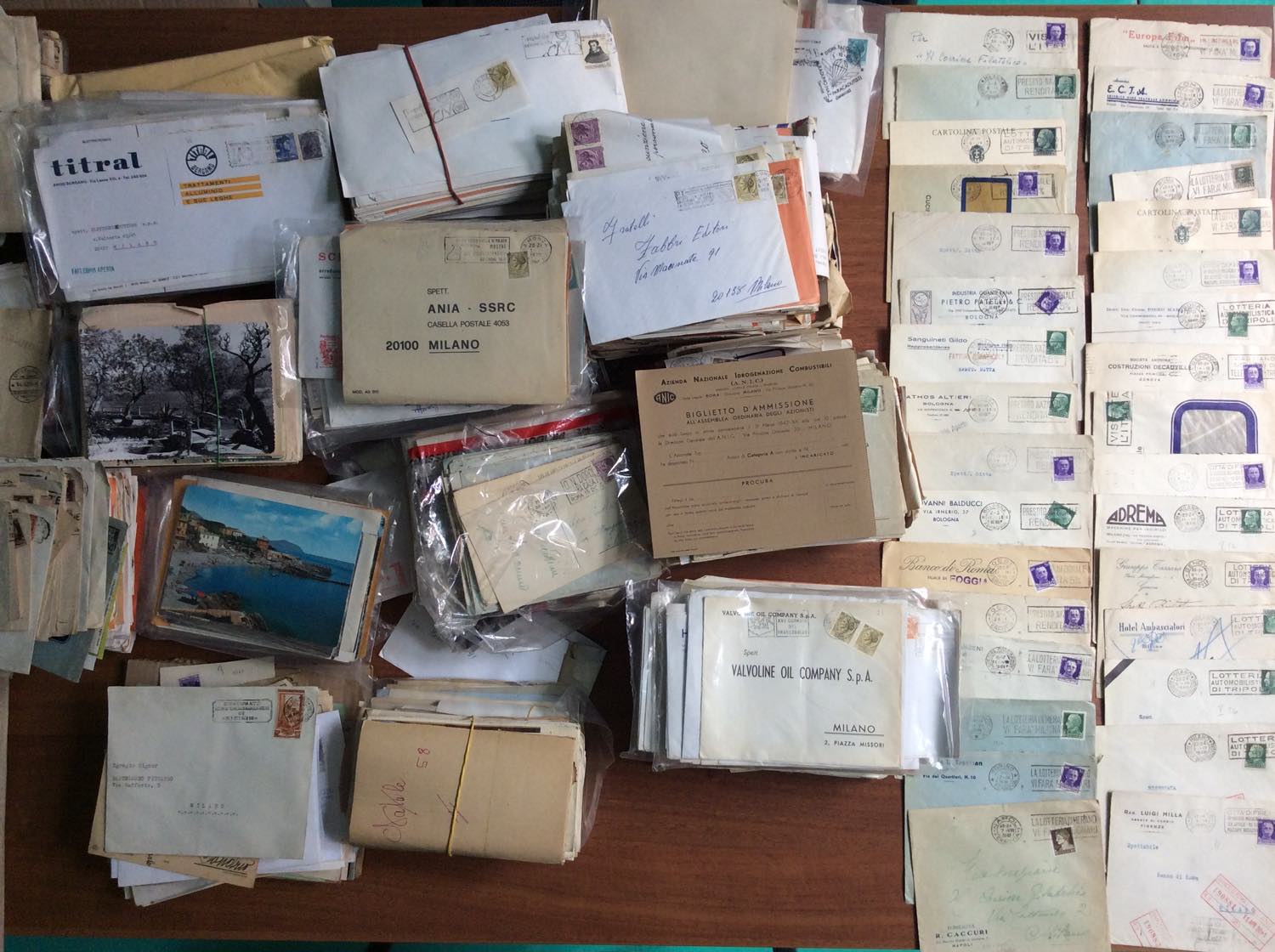 REGNO D'ITALIA/REPUBBLICA ITALIANA 1900/1990 - Enorme accumulazione di migliaia di lettere, cartoline e frammenti con ANNULLI, MECCANICI A TARGHETTA in tre grandi scatoloni. Insieme eccezionale per quantità e varietà tipologiche, proveniente dalla collezione Ornaghi. Di grande interesse sia per lo specialista che per lo studioso.
