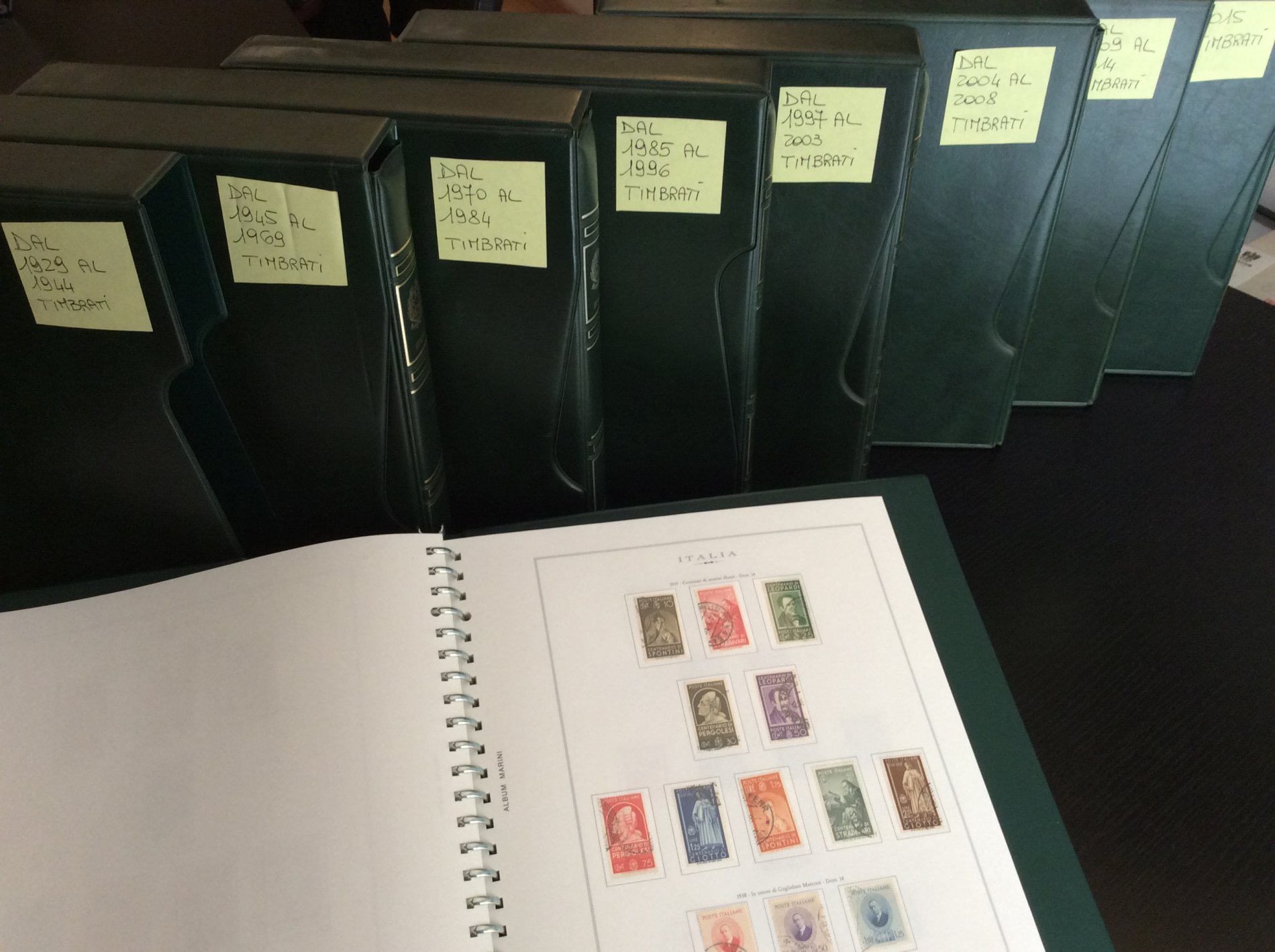 REPUBBLICA ITALIANA 1945/2015 - Collezione completa di francobolli usati di posta ordinaria del periodo in otto album Marini e relativi fogli d'aggiornamento. Manca solo il Gronchi rosa e i Ginnici sono con annulli da verificare. Ottima qualità.