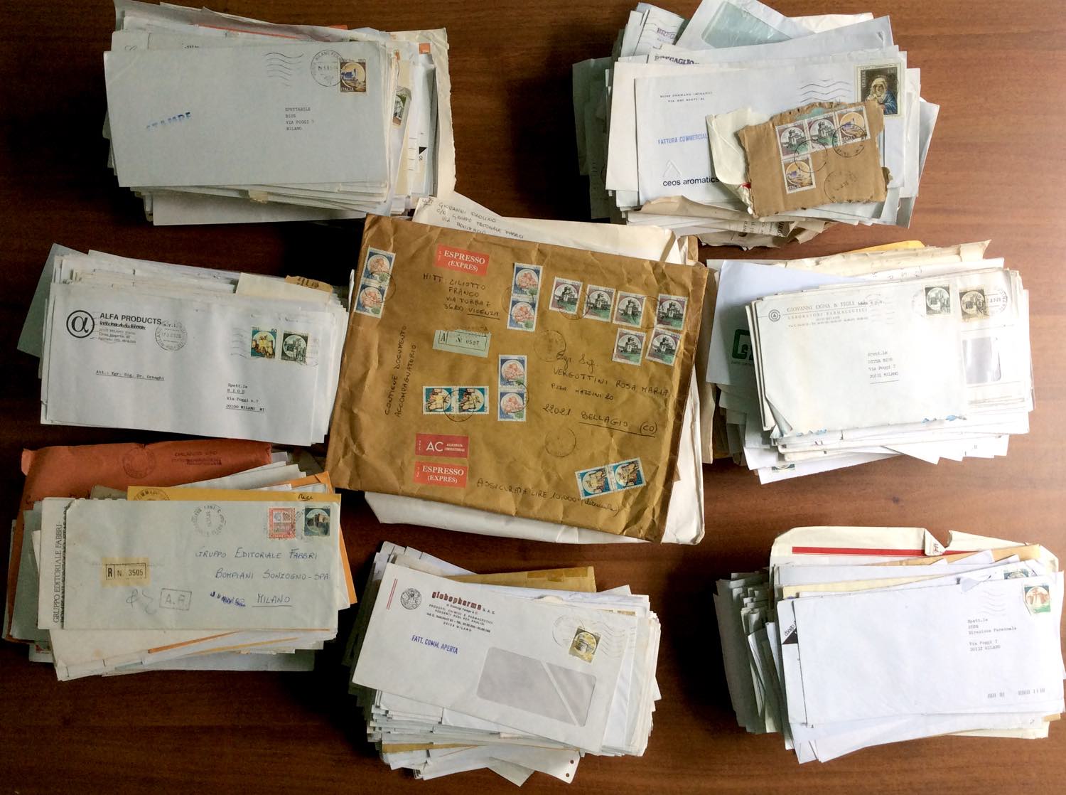 REPUBBLICA ITALIANA 1980/2000 - Enorme accumulazione di centinaia di lettere affrancate con valori della serie CASTELLI in un grande scatolone. Divertente per lo specialista.