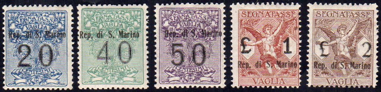 1924 - Soprastampati, cinque valori (1/5), gomma integra, perfetti.