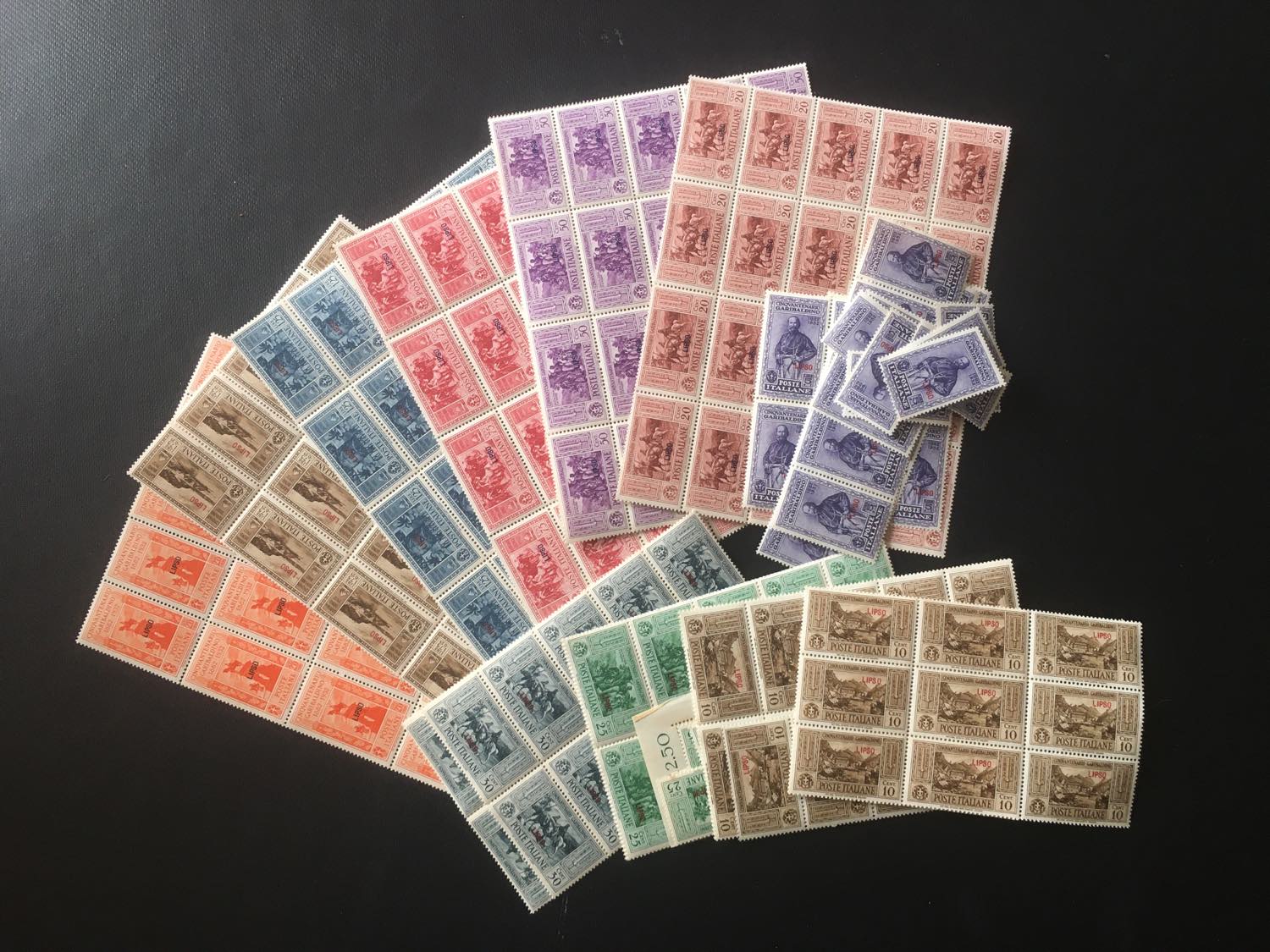 EGEO LIPSO 1932 - Garibaldi (17/26), quaranta serie in blocchi, gomma integra, qualche valore con lievi ossidazioni.