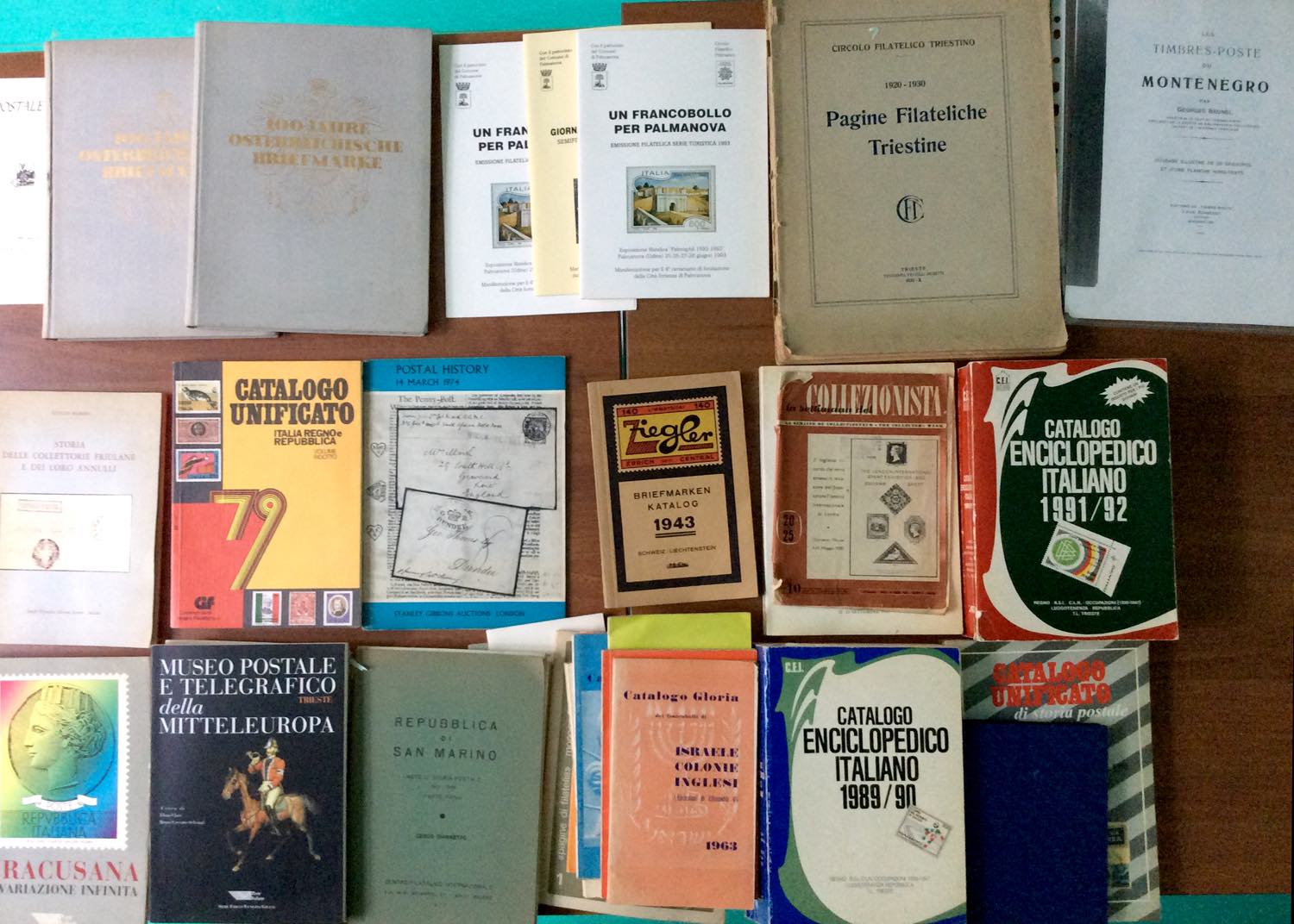 AREA ITALIANA - Scatolone con numerose pubblicazioni/cataloghi di francobolli e storia postale.