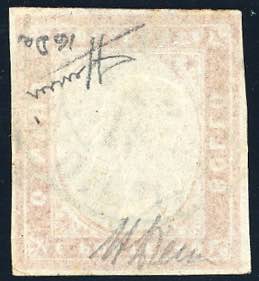 1861 - 40 cent. rosso vermiglio, EFFIGIE CAPOVOLTA (16dA), usato a Bordighera 14/10/1861, perfetto. Molto fresco e raro! A.Diena, cert. ... Read more