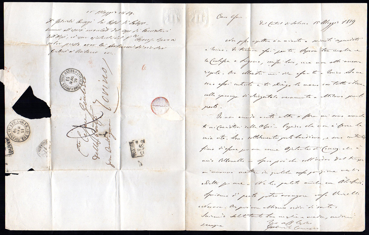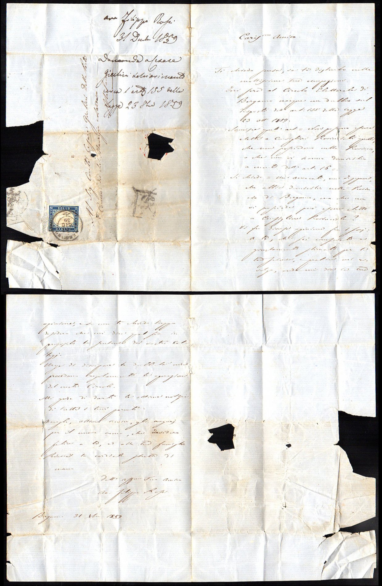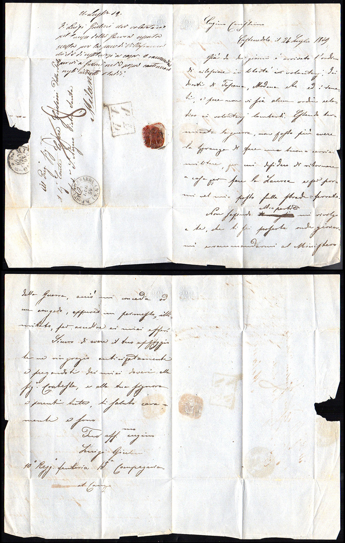 POSTA MILITARE 1848/59 - Cinque lettere del periodo con testi attinenti alle vicende militari, due con annulli di posta militare del 1859. Molto interessante.
