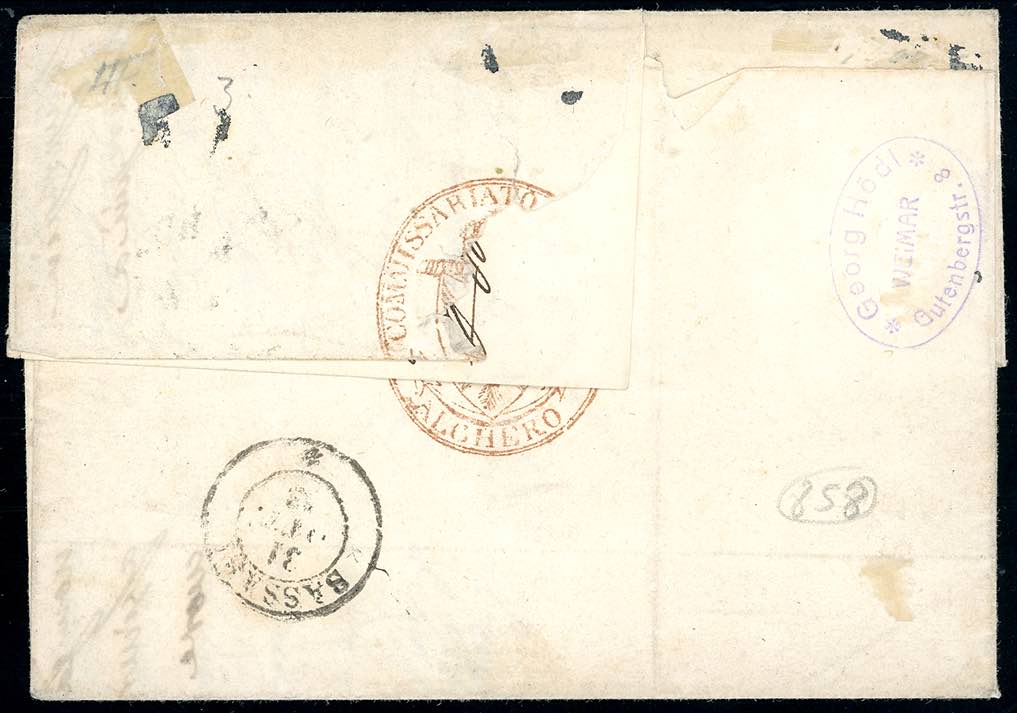 ISOLA DI SARDEGNA-ALGHERO d.c. rosetta, punti 8 - 40 cent. rosa chiaro (6), perfetto, isolato su fresca lettera di doppio porto del ... Read more