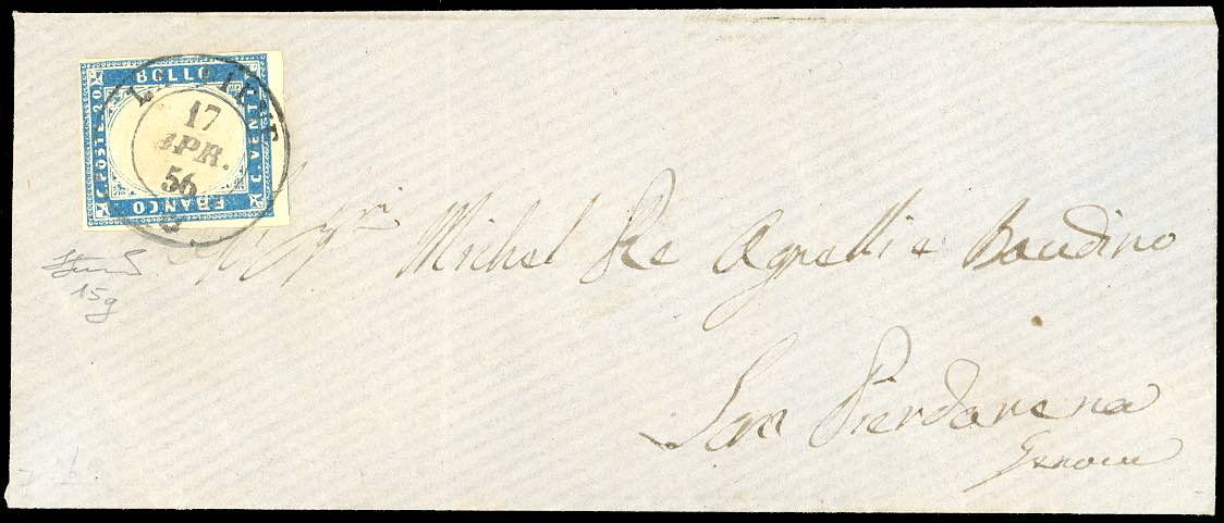 LIGURIA-LA PIEVE, punti 7 - 20 cent. (15g), perfetto, su busta del 17/4/1856 per Sampierdarena. Ferrario.