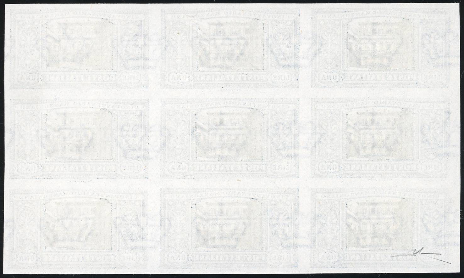 Lot 1029 - 1923 - 1 lira Manzoni, non dentellato (155d), blocco di 9, ...
