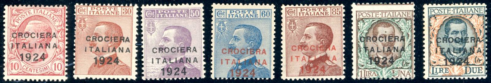 1924 - Crociera Italiana, serie completa (162/168), gomma originale integra, perfetti. Alti valori Ferrario.