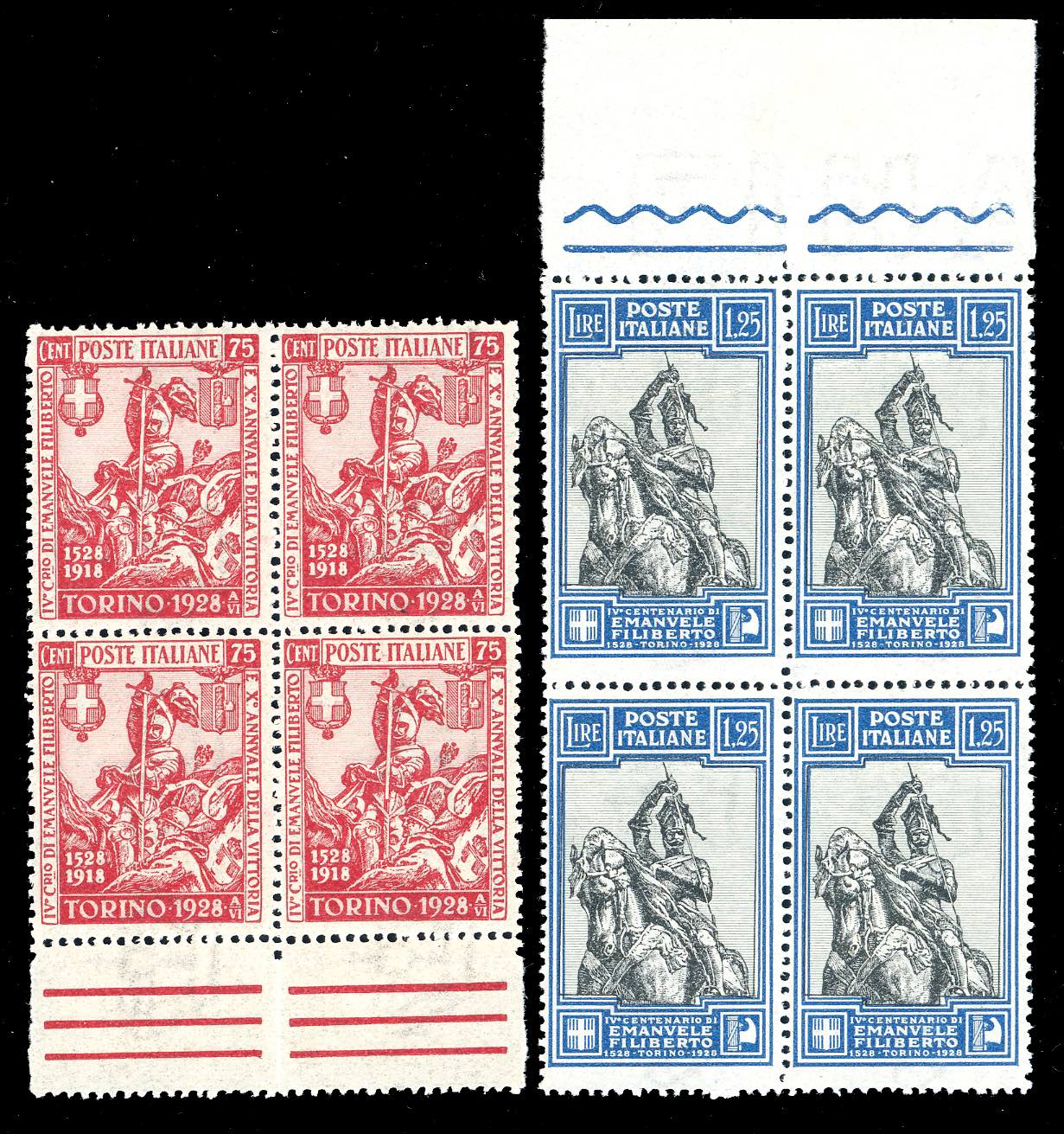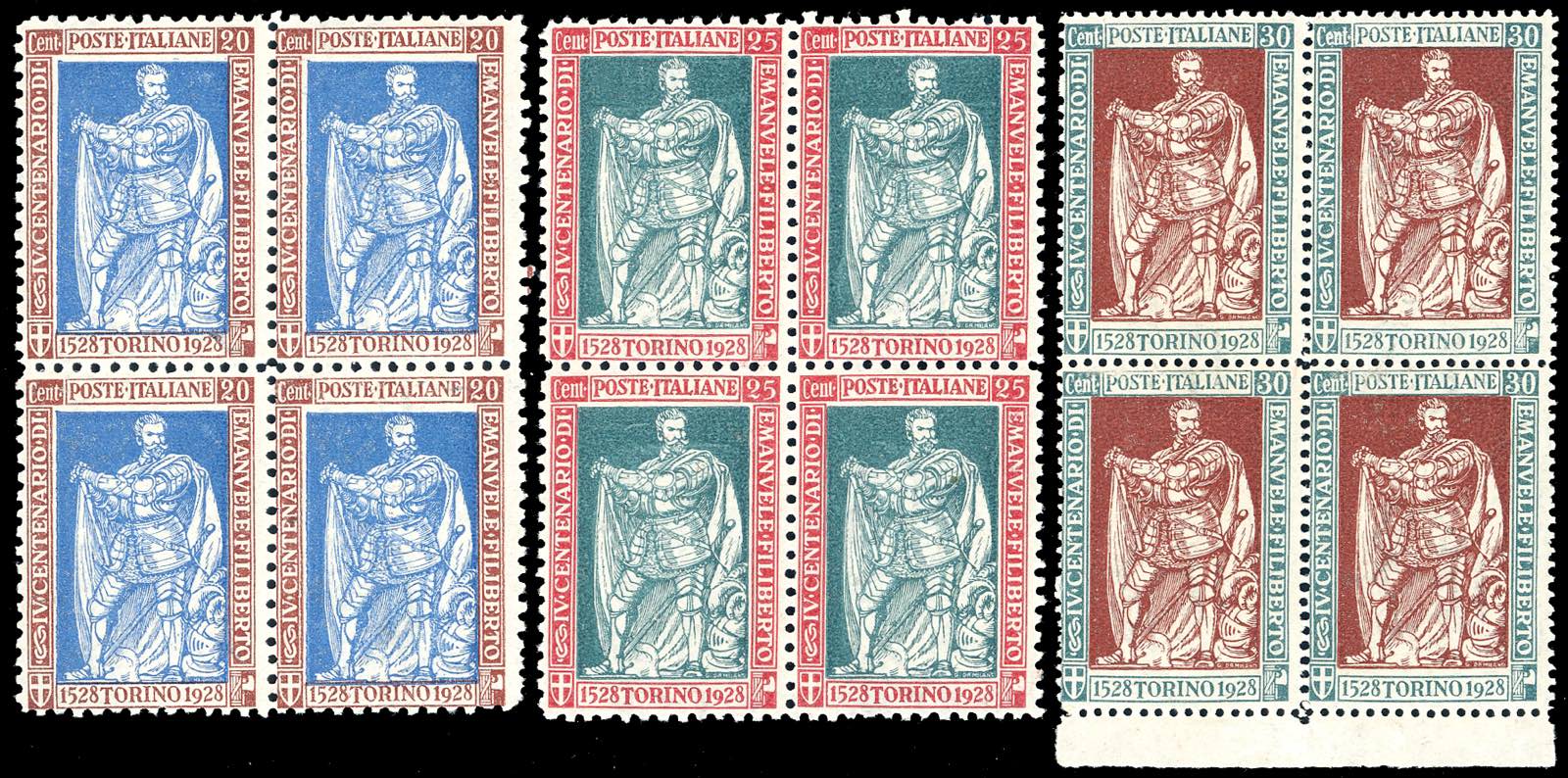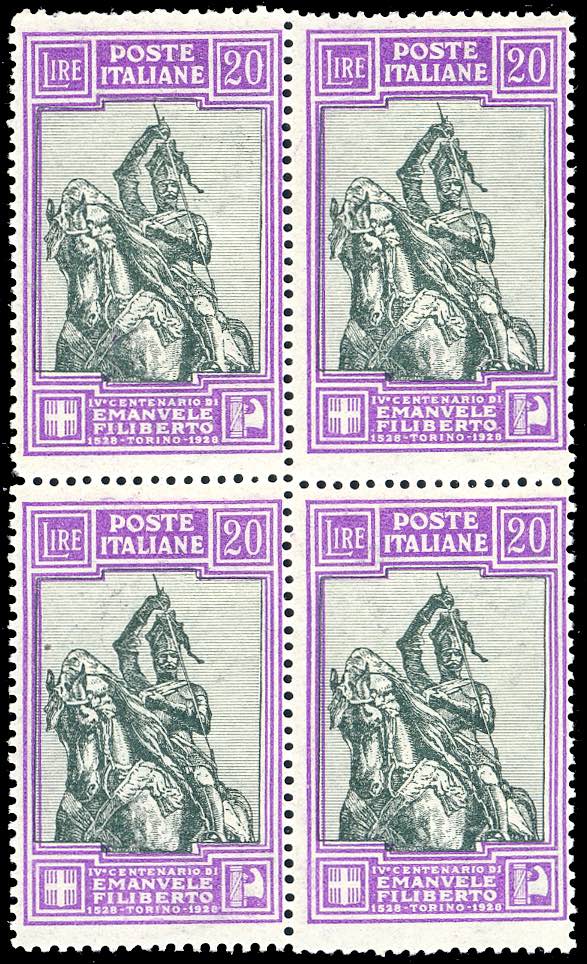 1926 - Emanuele Filiberto, serie completa di 13 valori (226/238), blocchi di quattro, gomma originale integra, perfetti. Bellissimi. ... Read more