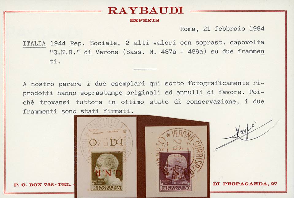 Lot 1211 - 1944 - Soprastampati G.N.R. di Verona, serie completa dei ...