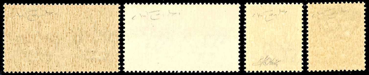 1944 - Soprastampati G.N.R., tiratura di Verona, errore di colore della soprastampa, quattro valori (118A/125A), gomma originale integra, perfetti. Cert. Oro Raybaudi.