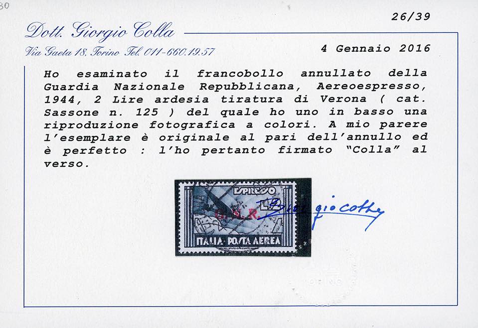 1944 - 10 lire Imperiale e 2 lire ardesia soprastampati G.N.R., tiratura di Verona (124/125), usati, perfetti. Due cert. Colla.