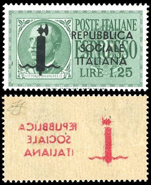 1944 - 1,25 lire soprastampato in nero, errore di colore, decalco della soprastampa in rosso (21Ai), gomma originale integra, perfetto. ... Read more