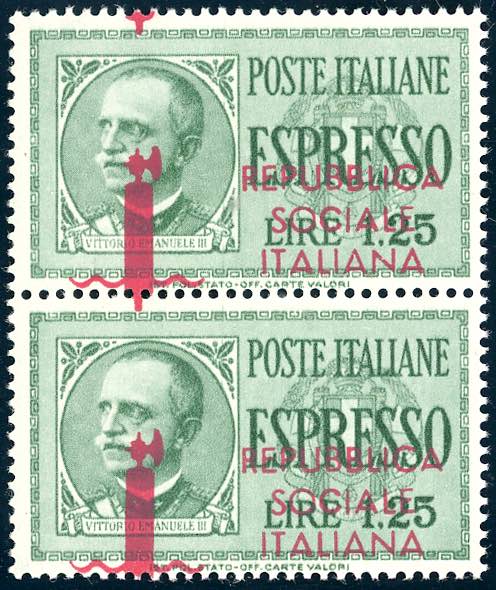 Lot 1331 - 1944 - 1,25 lire coppia verticale con soprastampa rossa di ...