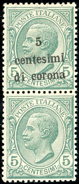 Lot 1557 - TRENTO E TRIESTE 1919 - 5 cent. su 5 cent., coppia ...