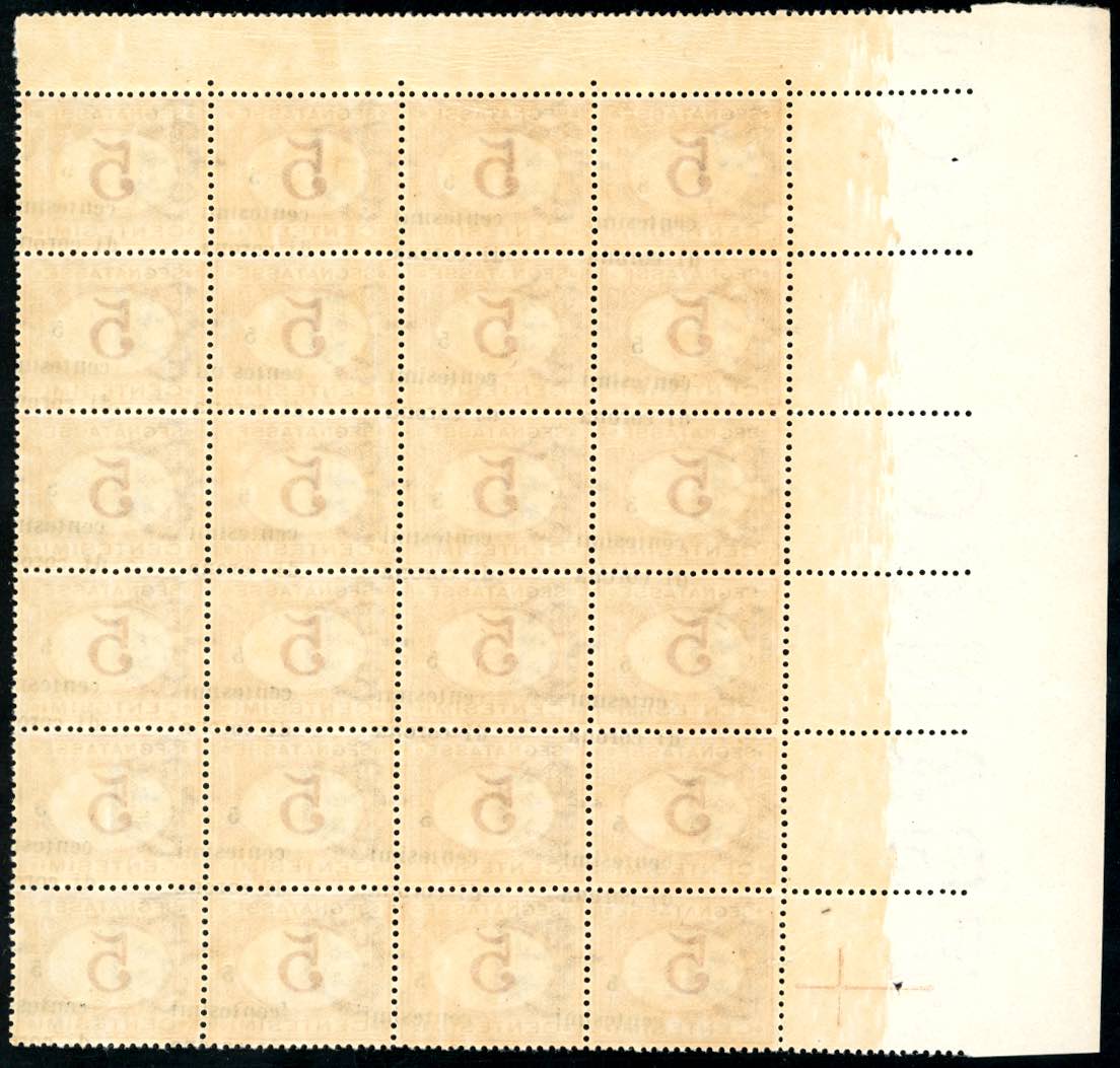 TRENTO E TRIESTE SEGNATASSE 1919 - 5 su 5 cent., soprastampa obliqua a cavallo (1l), blocco di 24 esemplari, angolo di foglio, gomma ... Read more