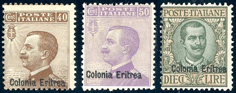 1916 - Soprastampati, serie completa (38/40), gomma originale integra, perfetti. Cert. Ferrario.
