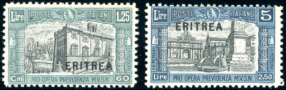 1927 - 1,25 lire su 60 cent. e 5 + 2,50 lire Milizia prima emissione, non emessi (118A/119A), gomma originale integra, perfetti. Molto freschi, ottima qualità. Cert. Ferrario.