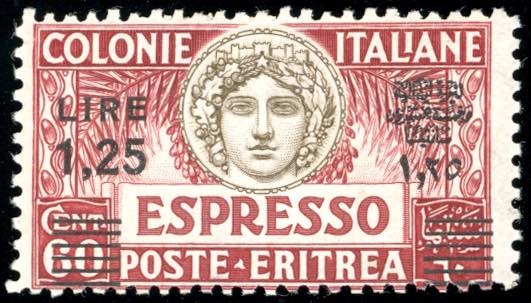 ESPRESSI 1935 - 1,25 lire su 60 cent., dent. 11, soprastampato in nero (8), salto di dentellatura in basso, formato più piccolo, gomma ... Read more