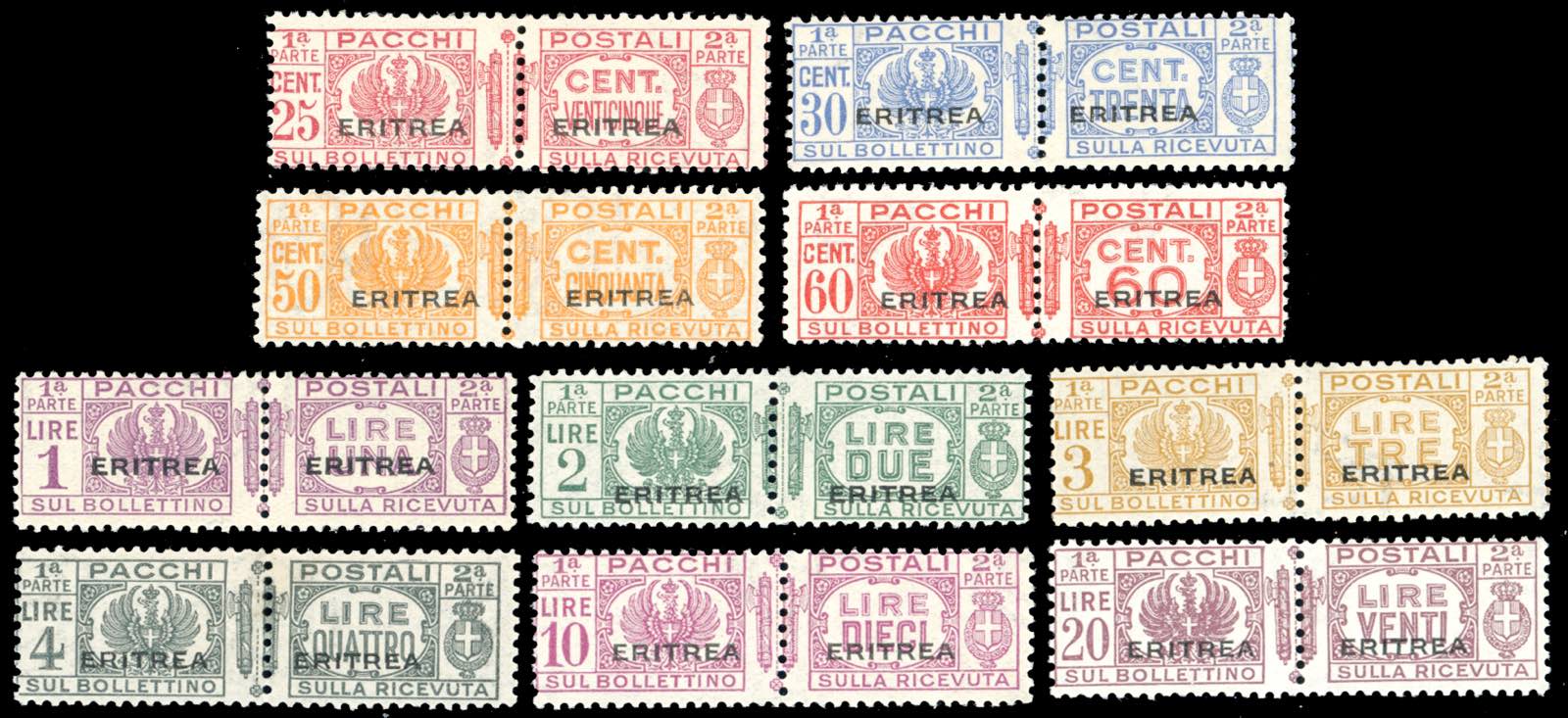 PACCHI POSTALI 1927/37 - Fascio al centro, serietta di dieci valori (23/32), gomma originale integra, perfetti. Cert. Diena per gli alti valori.