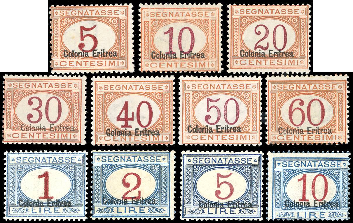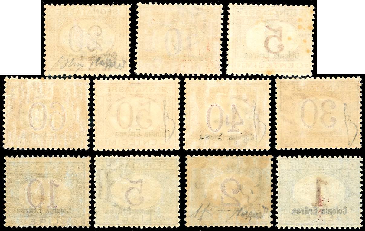 SEGNATASSE 1920/26 - Soprastampati in basso, serie completa (14/24), gomma originale integra, perfetti. Cert. A.Diena per il 2 lire e Caffaz per il 20 cent. e il 2 lire.
