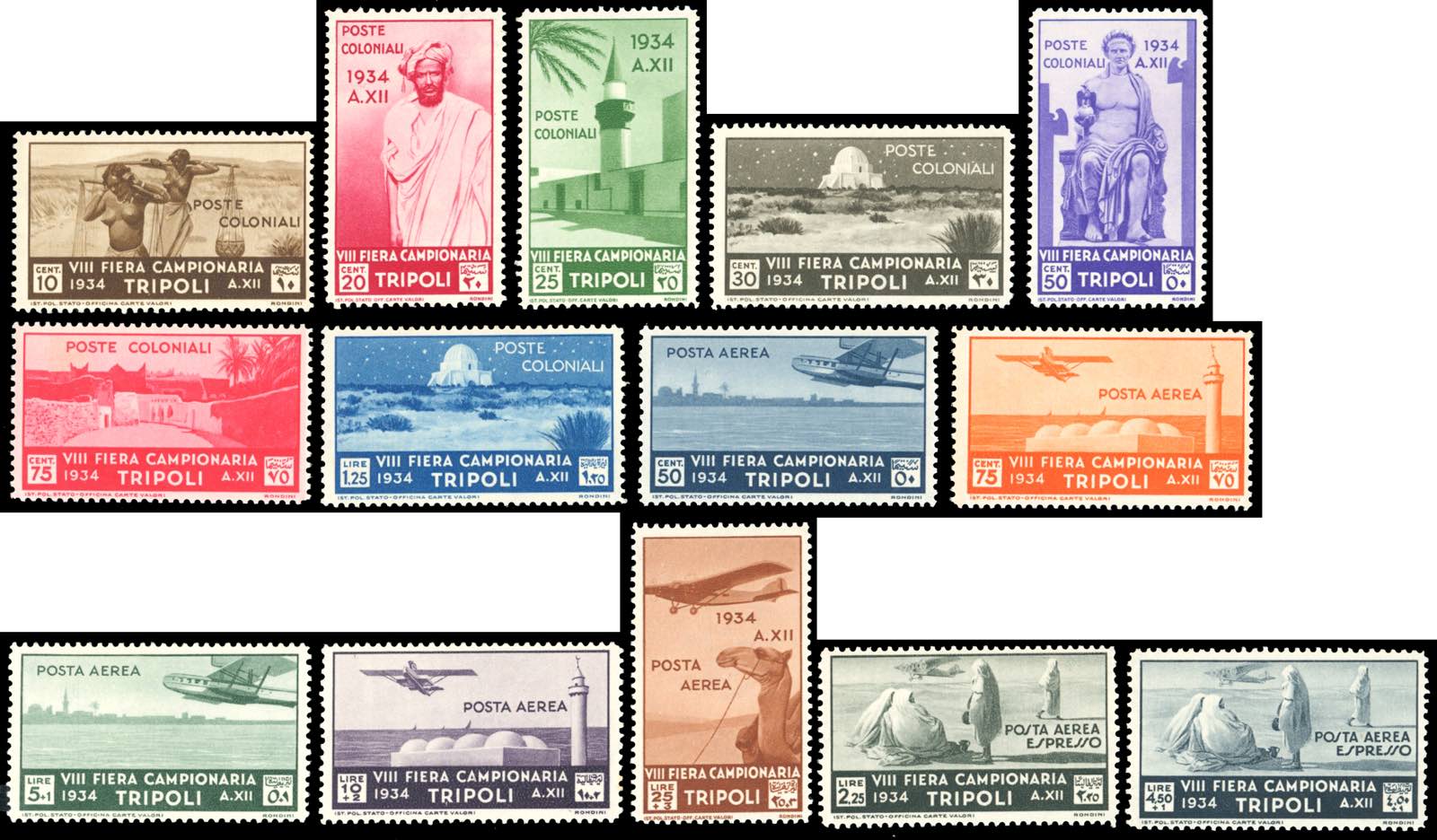1934 - VIII Fiera di Tripoli, serie completa (125/131+A), gomma originale integra, perfetti. Cert. Ferrario.