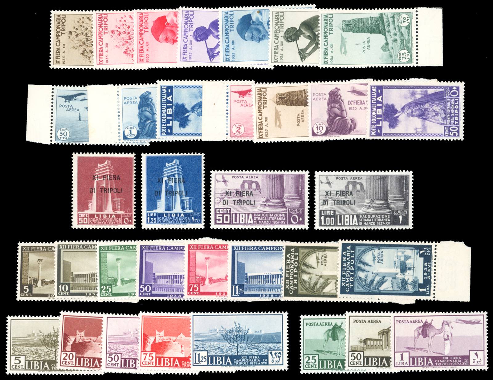 1935/39 - Fiere di Tripoli, dalla IX alla XIII in serie complete (132/137+A,138/139,142/143+A,146/151+A,158/162+A), gomma originale ... Read more
