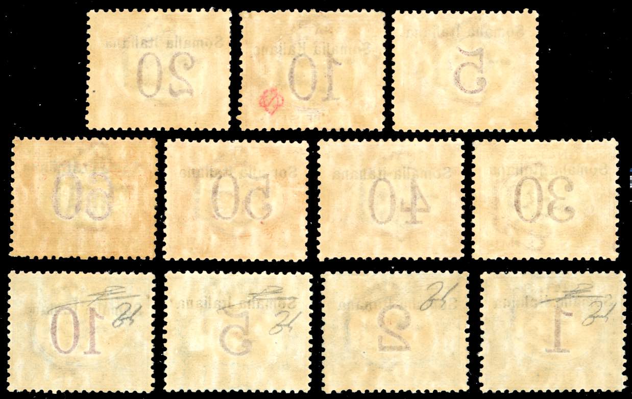 Lot 1944 - SEGNATASSE 1909 - Somalia Italiana in alto, serie completa ...